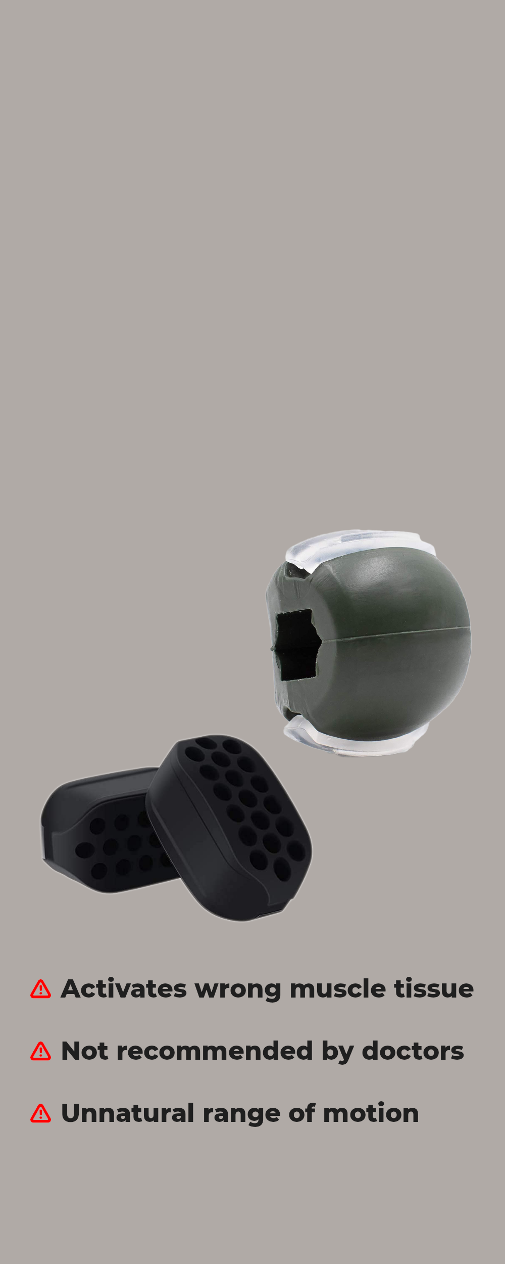 Die effektivste und natürlichste Art, die Kiefermuskulatur aufzubauen, ist das Kauen von Hartkaugummi. Während des Kauens finden in den Gelenken viele komplexe Bewegungen und Prozesse statt. Mit Kauapparaten wird die natürliche Bewegung gestört, was zum Wachstum eines Teils des falschen Muskelgewebes führt, das für die Gesichtsstruktur nicht ideal ist. Und die damit verbundenen Gelenkprobleme sind einer der Hauptgründe, warum Ärzte vor der Verwendung dieser Geräte warnen.